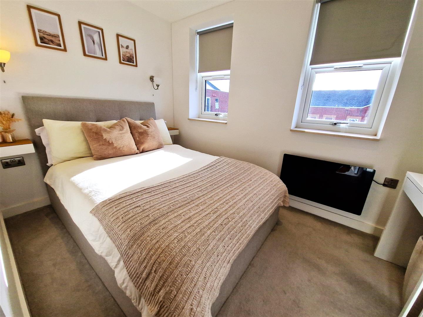 As you enter the property, you are greeted by an inviting entrance hall leading into a open-plan living area that seamlessly combines comfort and style. The modern fitted kitchen is equipped with integrated appliances, ensuring that cooking and entertaining are both enjoyable and effortless. The spacious living area features patio doors that lead to a lovely Juliet balcony, allowing natural light to flood the space and providing a pleasant view of the surroundings.