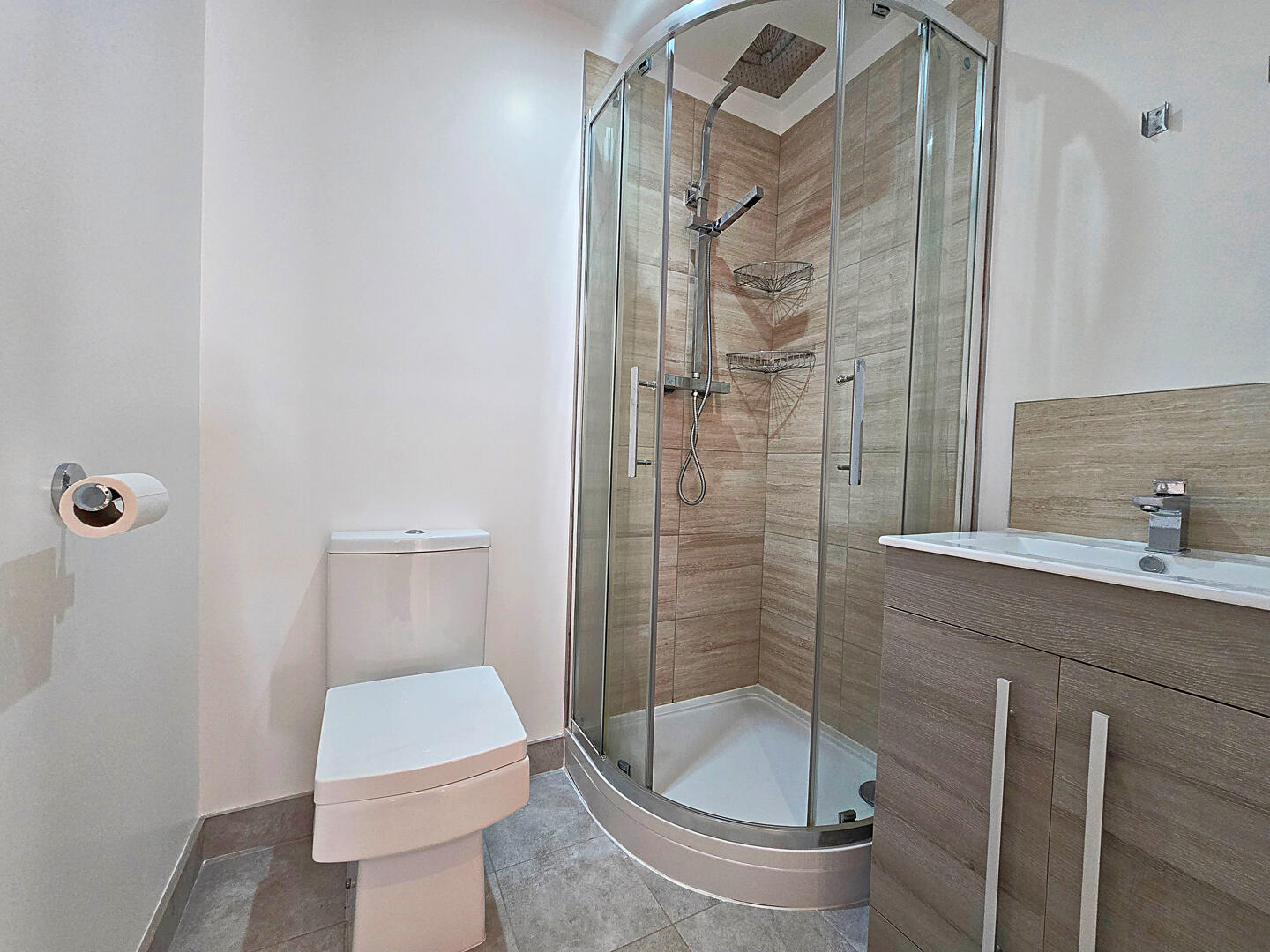 The double bedroom is generously sized and comes complete with a built-in wardrobe, offering ample storage for your belongings. The bathroom is well-appointed with a shower cubicle, providing a refreshing space to unwind after a long day.