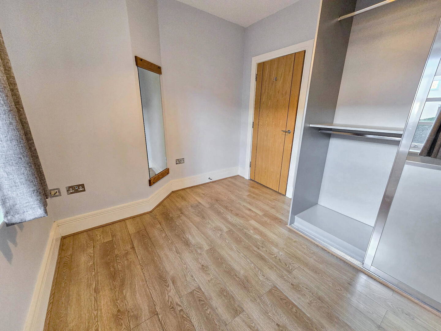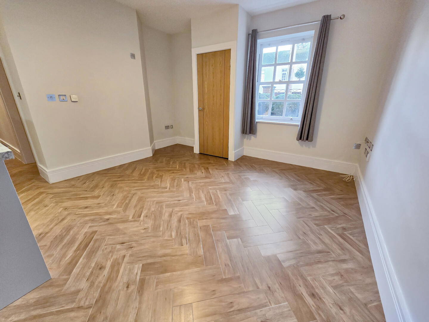 The spacious double bedroom boasts fitted wardrobes, providing ample storage while maintaining a sleek and uncluttered aesthetic. The family bathroom is well-appointed, complete with a shower over the bath, offering both practicality and comfort.