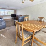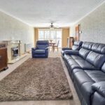 Stretching almost the full depth of the house, the lounge/diner is a generous and versatile space. Large windows and double doors at the far end allow ample natural light to flood in, creating a bright and airy atmosphere. The room features a fire with a carved surround and has space at the far end for a dining table. Neutral wall textures and carpeted flooring add warmth throughout.