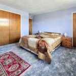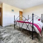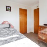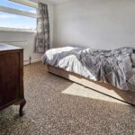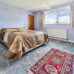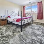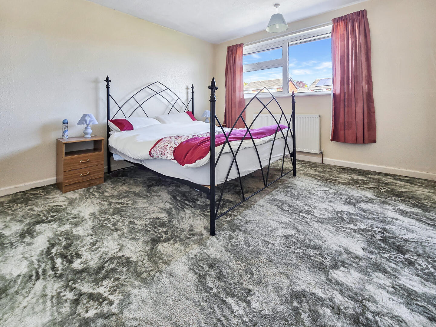 The principal bedroom is a spacious retreat with a large window overlooking the front garden. It benefits from built-in wardrobes with wooden doors and ample room for a large double bed and bedside furniture.