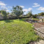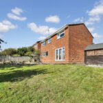 A well-maintained rear garden offers a lawn bordered by mature shrubs and trees. There is a raised decking area perfect for outdoor seating or dining, and a shed providing useful storage. The garden enjoys a good level of privacy and sunshine throughout the day.