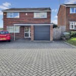 Approached via a spacious block-paved driveway, the front exterior boasts a classic brick façade and a large integral garage with a roller door. The property sits neatly within its plot, complemented by a tidy front lawn area and access to the side of the house.