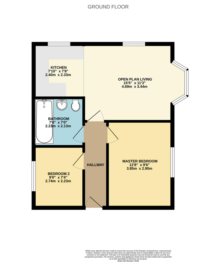 Bedroom 2 is a smaller sizable room, with natural light creating a cosy and practical bedroom or children's room.
