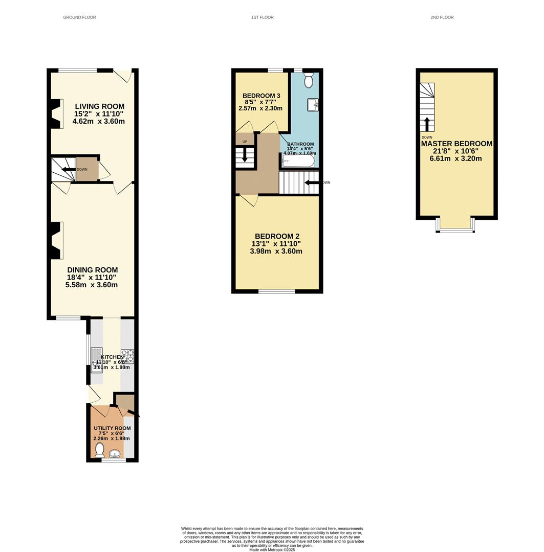 The first floor comprises two well-proportioned bedrooms and a modern family bathroom with a shower over the bath. The spacious master bedroom occupies the entire second floor, offering a peaceful retreat.