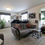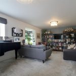 A bright and spacious living room with large square bay window that floods the room with natural light. The room is perfect for family entertaining creating a warm and inviting space.