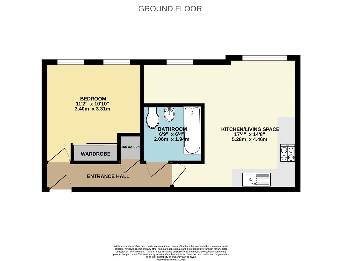 With a double bedroom that has built in wardrobes, a stylish bathroom with shower over the bath and chrome heated towel rail and an open-plan living space with a kitchen area (with built in appliances), and seating area with an alcove perfect for a work-station or dining table. With a designated parking space and secure intercom entry. No chain.